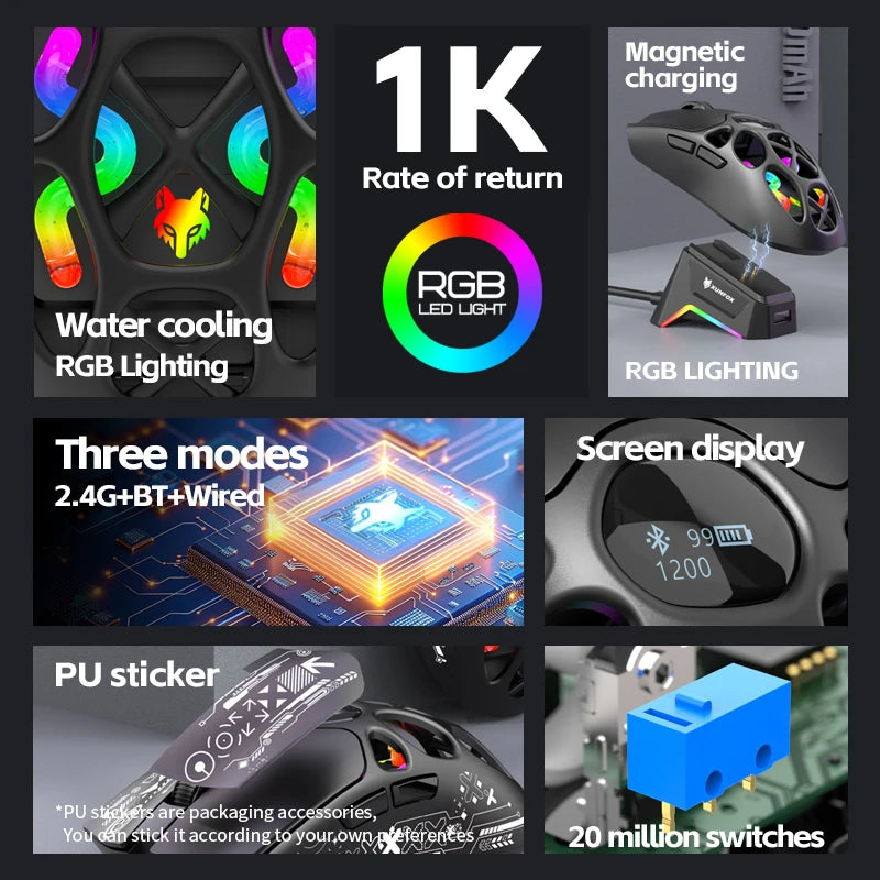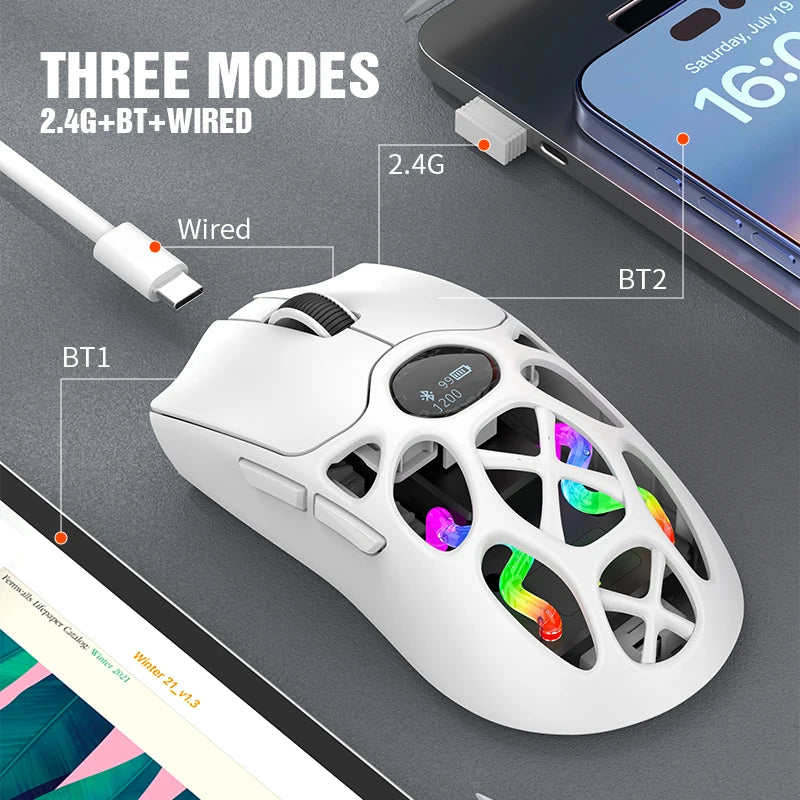 Attack Shark H16 Mouse, lightweight S205, three-mode wireless Bluetooth mouse for gaming, charging, RGB lighting, suitable for P
