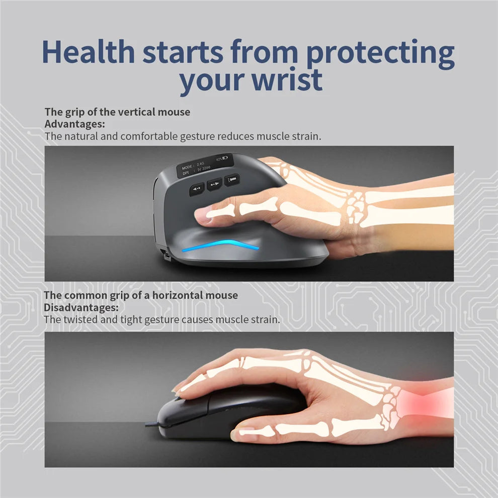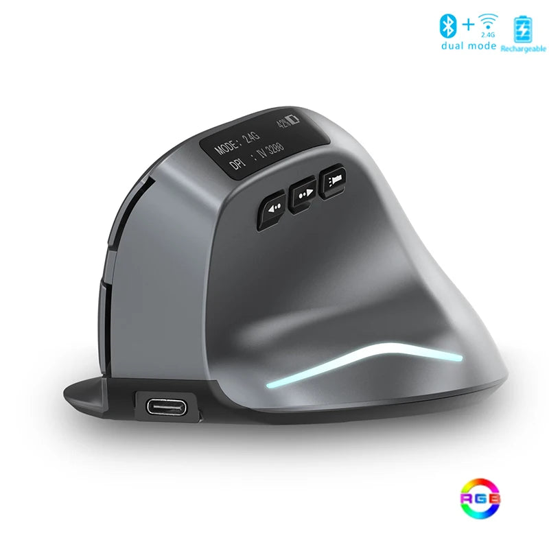 Bluetooth Vertical Wireless Mouse with OLED Screen USB RGB Rechargeable Mouse for Computer Laptop Tablet Ergonomics Mice Gaming