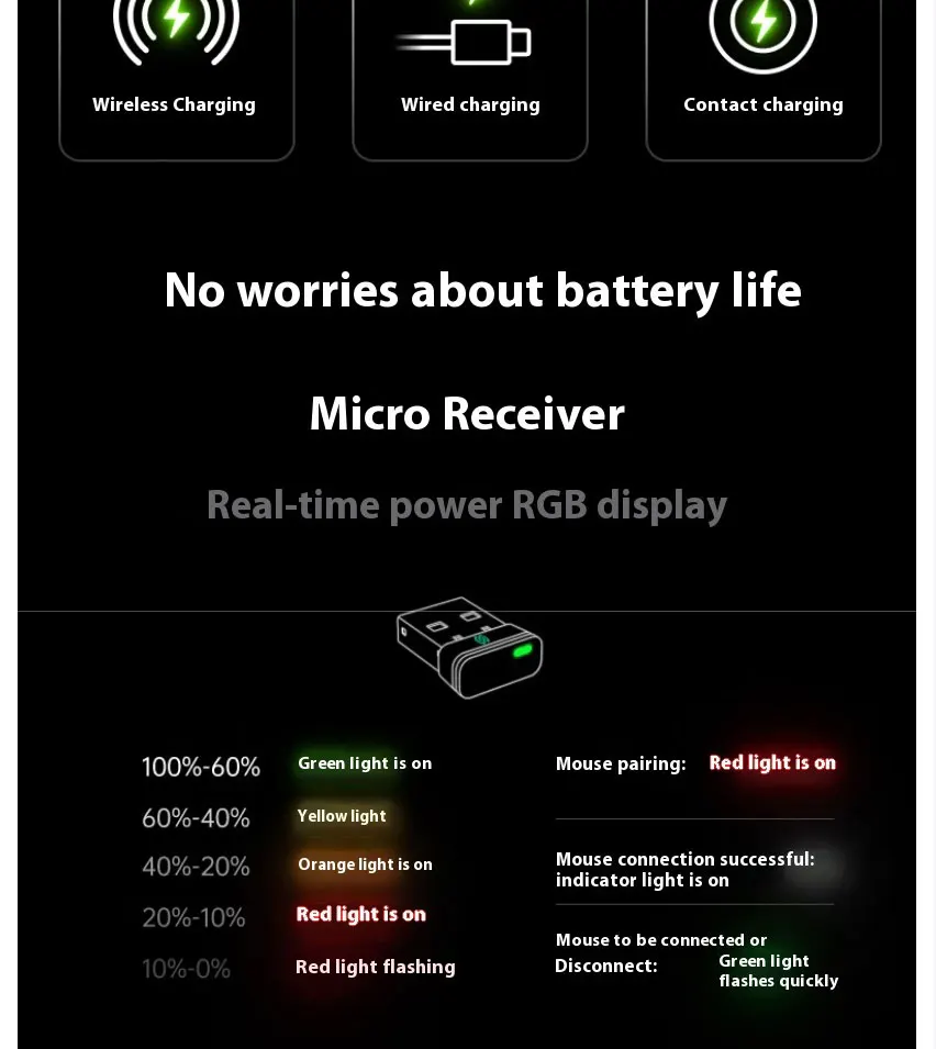 · Mini nano receiver | Real-time battery level RGB light display