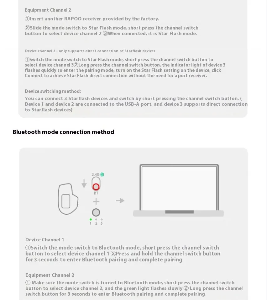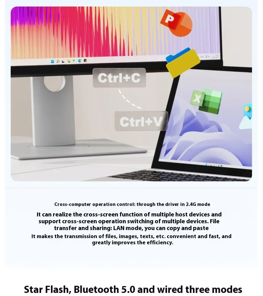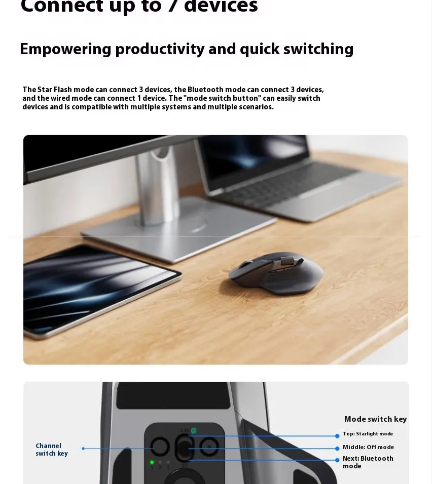 Star Flash & Bluetooth 5.0 & Wired Connection, up to 7 devices can be switched simultaneously