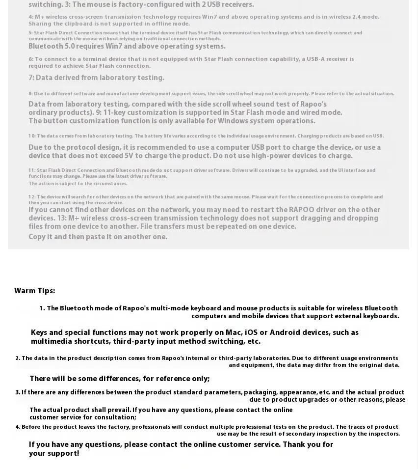 Note: Charging products are designed based on the USB protocol. It is recommended to connect the device for charging via the computer's USB port, or use a device with a voltage not exceeding 5V to charge the product. Do not use high-power devices for charging.
