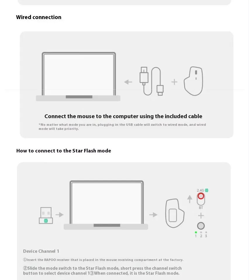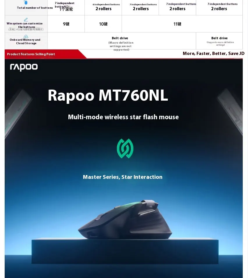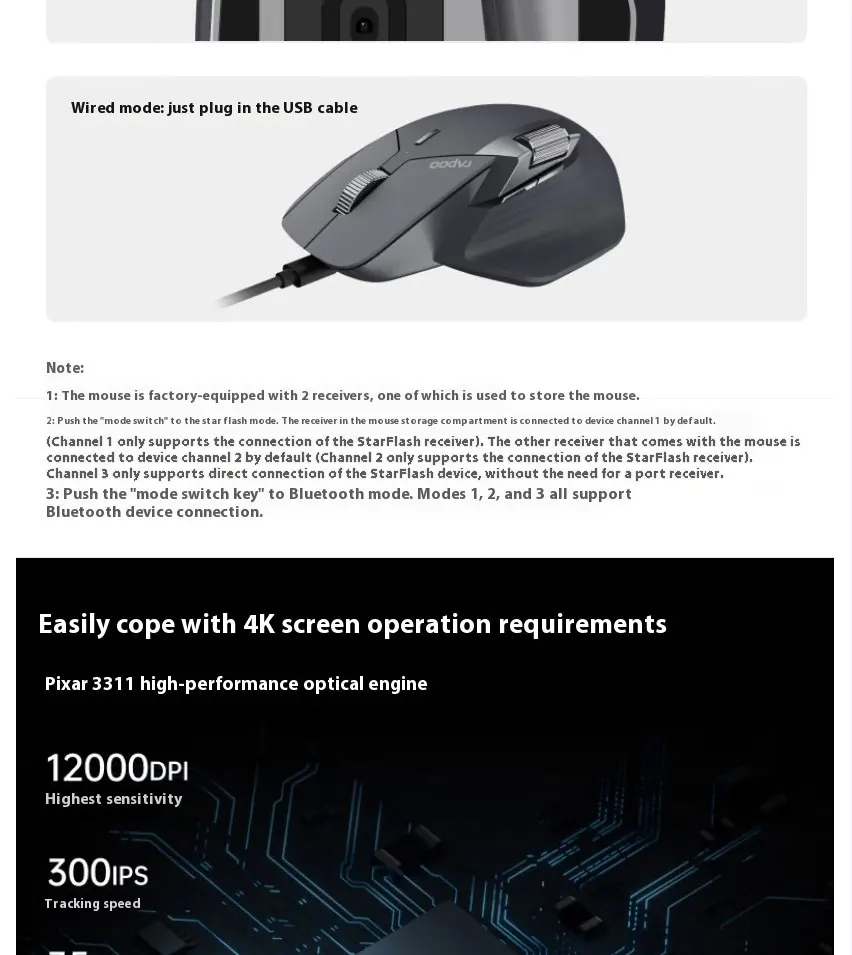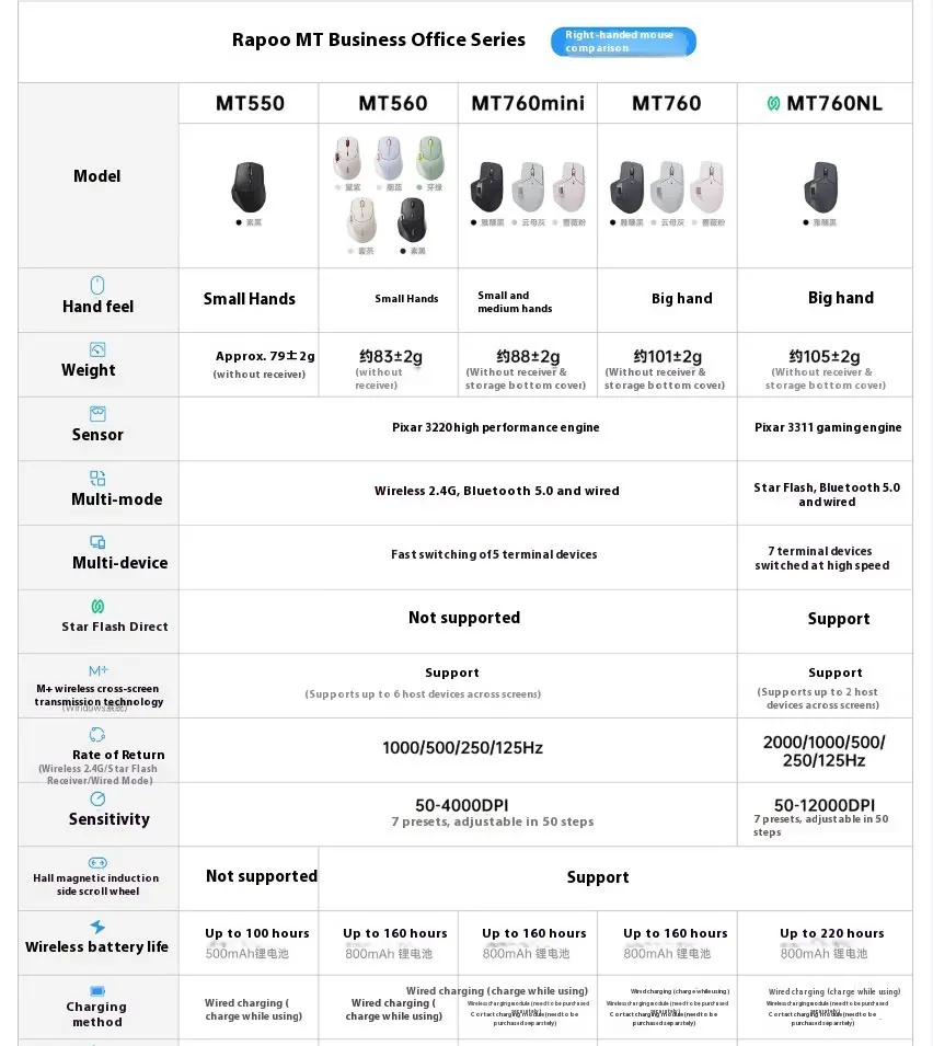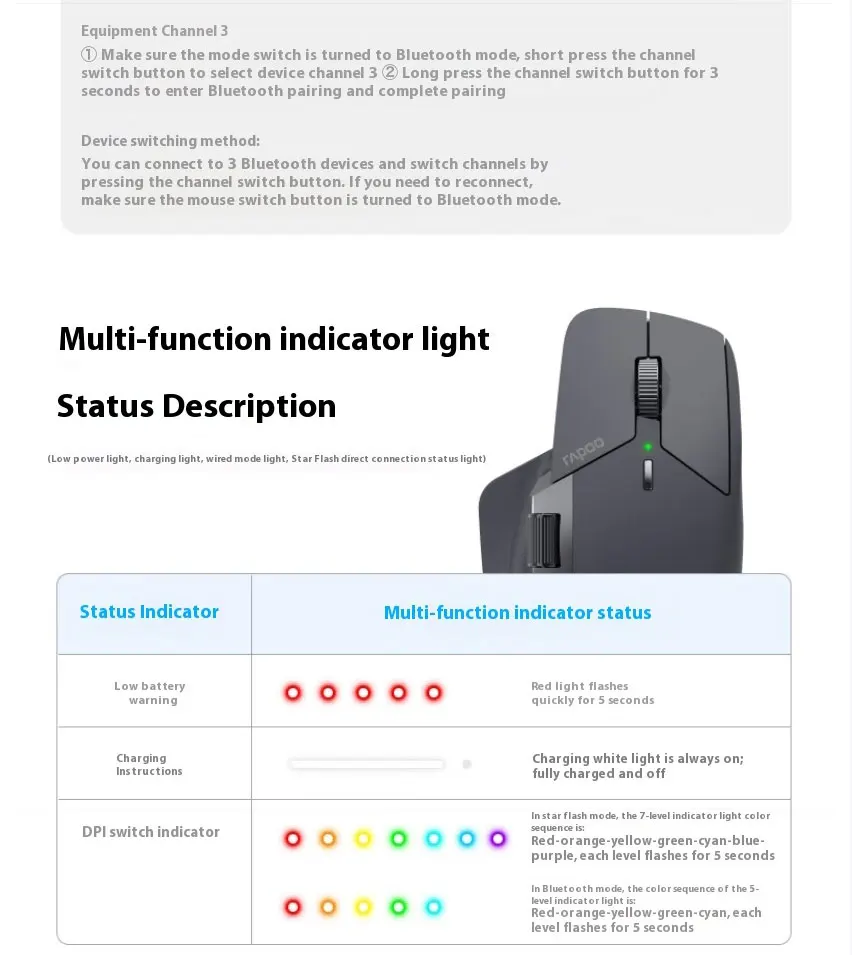 Rapoo MT760NL Big Hand Star Flash/Bluetooth/Wired Multi-mode Office Mouse Cross-screen Transmission