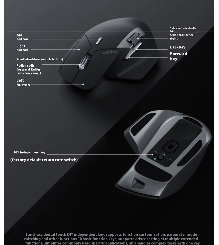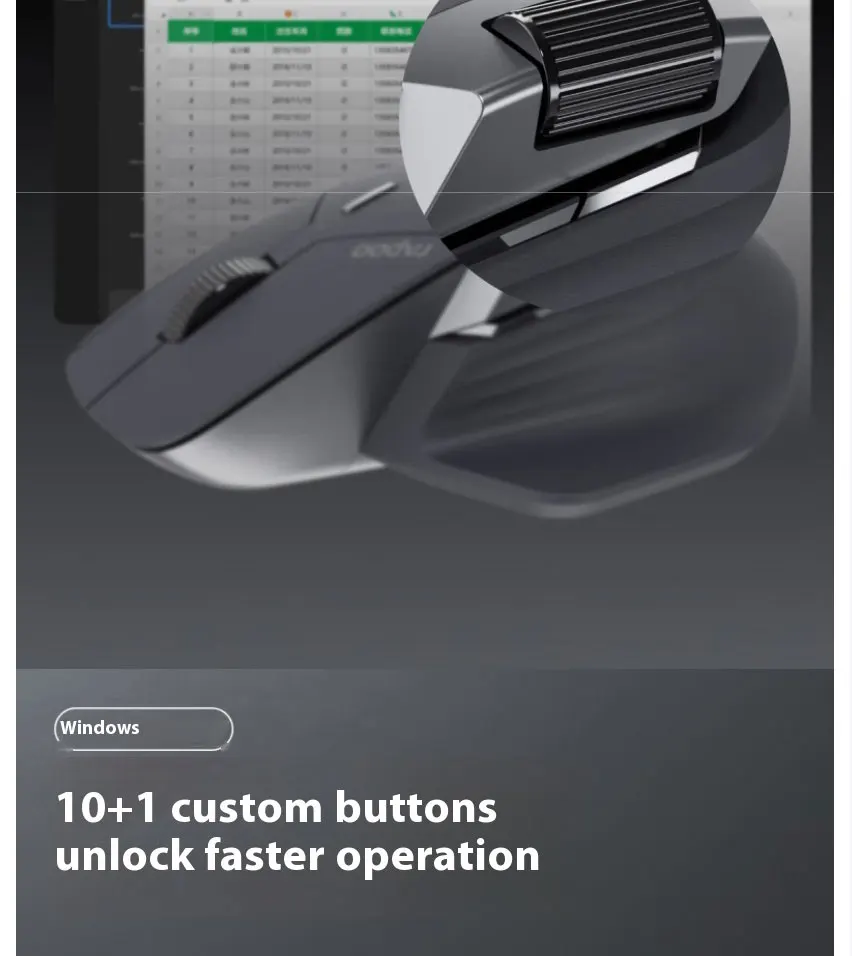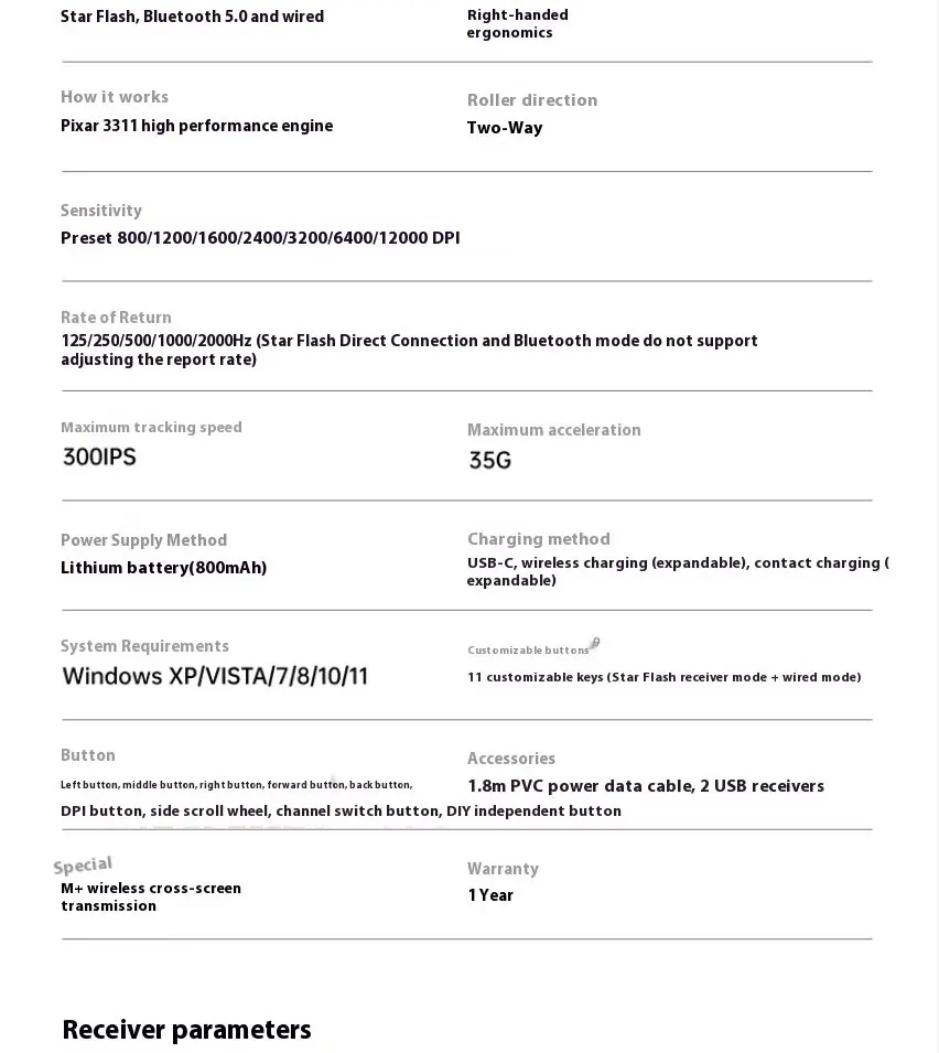 2.4G mode + wired mode, 1 + 10 customizable buttons that can be programmed